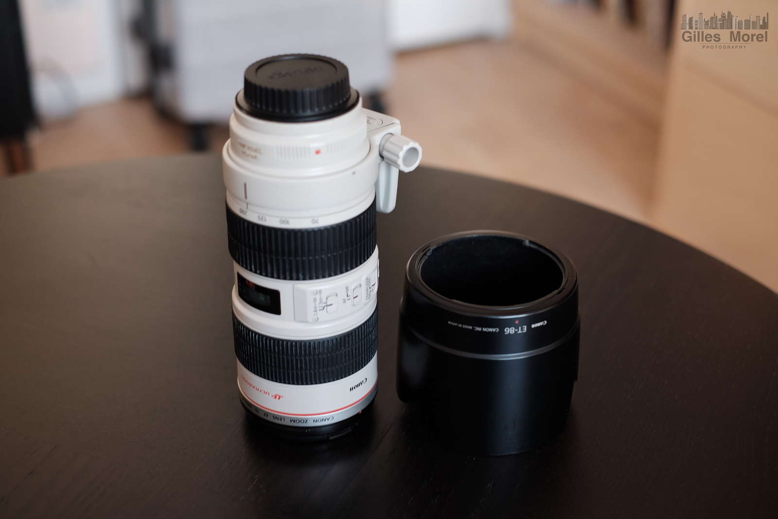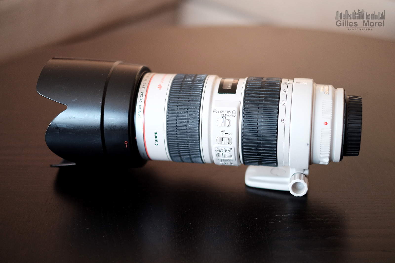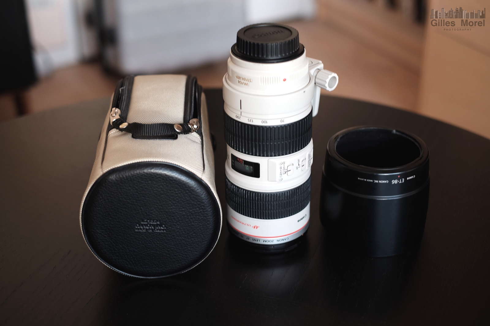 Excellent état. Lentille toujours protégée par un filtre. Vendu avec le pare-soleil ainsi que la sacoche Canon : 1.100€